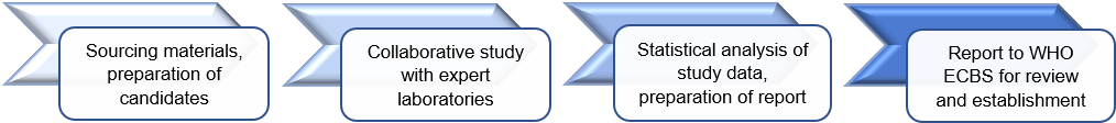 They are calibrated in units of biological activity (International Units, IU) which are assigned following extensive studies involving multiple international laboratories. They are then formally established following review by the WHO Expert Committee on Biological Standardisation (ECBS) at its annual meeting in October.